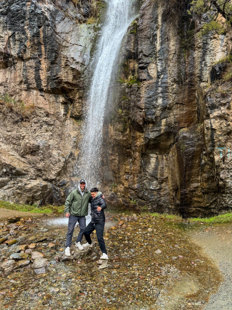 After fueling up, we did some cleaning in the yard for Eridan’s parents, who went to the bazar in bishkek to stock up their little Kegety Shop. Then we could finally leave for our first adventure in the kyrgyz nature. We got picked up by a friend of Eridan with his car and went to a beautiful waterfall. The journey took us past rushing rivers, surreal mountains, and scattered yurts, dotting the landscape like in a ottoman fairy tale. On the road we had some kyrgyz sweets and ice cream.