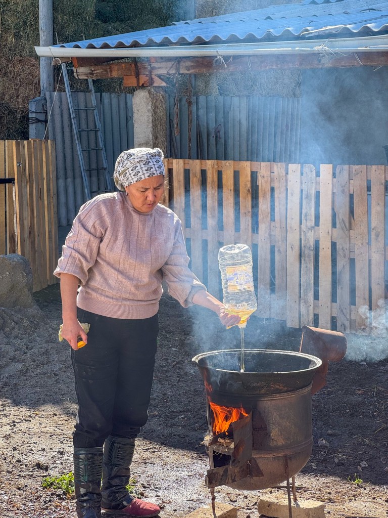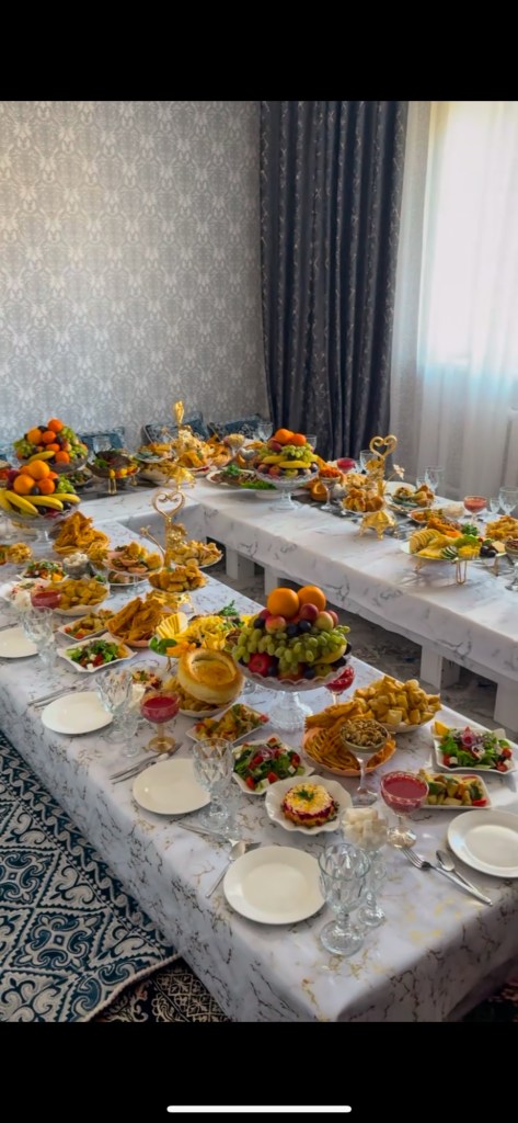 The next day, the long-awaited celebration finally began. Our morning started with an incredible breakfast, prepared by Eridan’s oldest brother — who just happens to be a chef for the Kyrgyz president. The spread was a perfect mix of cultures and flavors: French toast, fresh fruits, biscuits, simit, sucuk, tomatoes, and, of course, Eridan’s mother’s famous carrot salad.
