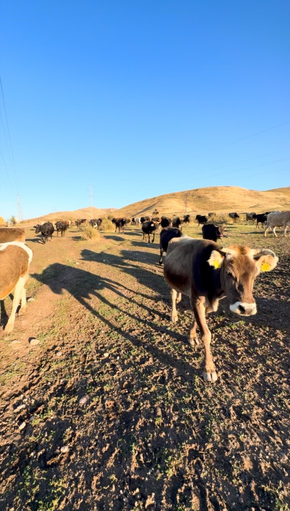 Never mind. By 5 p.m., I was at that perfect level of tipsy where everything just feels right, so I decided to take a walk while the party continued. I just wanted to have a quiet moment for myself to appreciate the state of mind and the journey i experience right now. Then the best thing happened to me. As I wandered up a small hill, taking photos, something incredible happened — about a hundred cows suddenly appeared, moving in a massive wave towards me. They split around me, passing on both sides, as if I was part of the landscape. It was surreal. On my way back, two shy little girls approached me, giggling nervously. They asked for a photo with me, like I was some kind of celebrity. To them, I probably was — tourists rarely make it to their tiny village. That moment, their excitement, their pure curiosity — it’s something I’ll never forget.