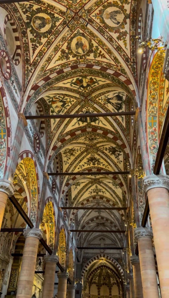 Verona is filled with churches — more than 40 of them — but the Basilica di Santa Anastasia is the one that will stay with you. At first, the outside of the biggest church in Verona might not impress you too much. But step inside, and you’re standing in a Gothic masterpiece, around 700 years old. The high arches, detailed frescoes, and play of light feel almost magical. You immediately understand why it took them almost 2 centuries to build it.
