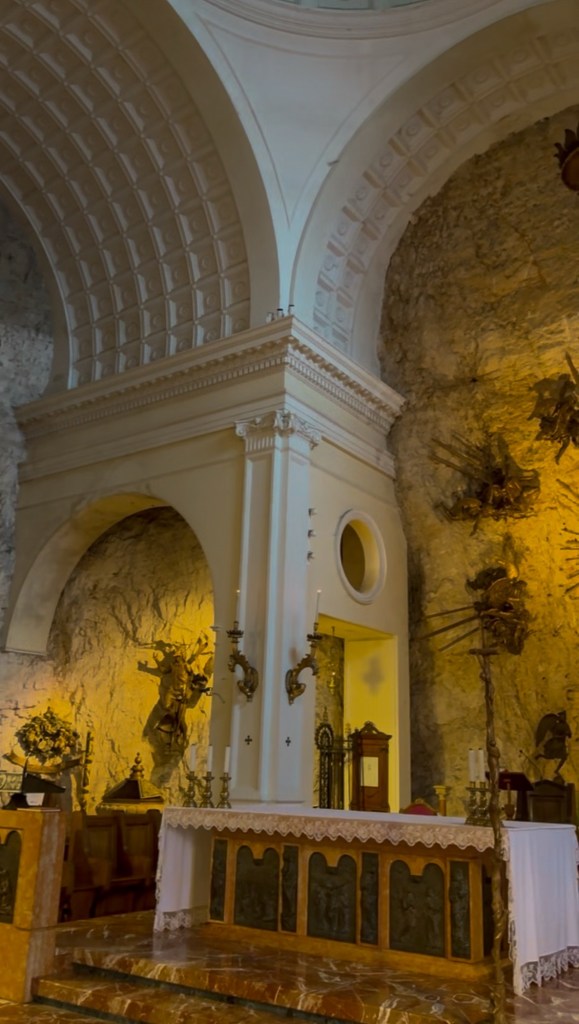 Once you arrive, the sight is unforgettable: the church walls merging with the mountain rock, the quiet inside filled with candles and prayers, and outside that sweeping view that makes you pause and just take it all in. This place isn’t only a religious site — it’s a masterpiece of nature and faith combined.